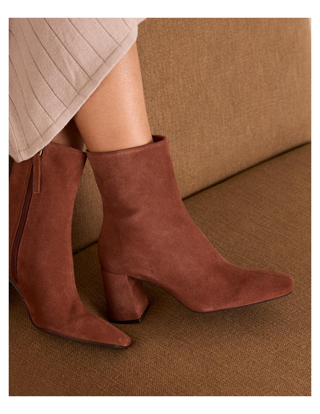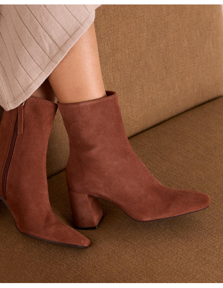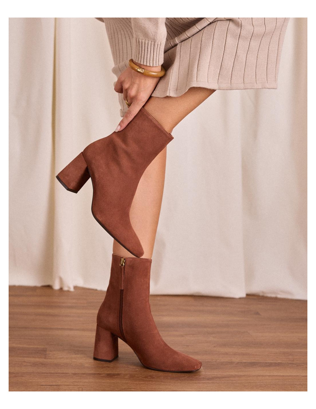 <p><span style="font-size: 10pt; font-family: Arial;">Botines en color <strong>maquillaje</strong> con **acabado efecto ante**, <strong>punta cuadrada</strong> y <strong>tacón ancho de altura media</strong>. Incorporan <strong>cremallera interior</strong> para facilitar el ajuste y un diseño cómodo y actual.</span></p>