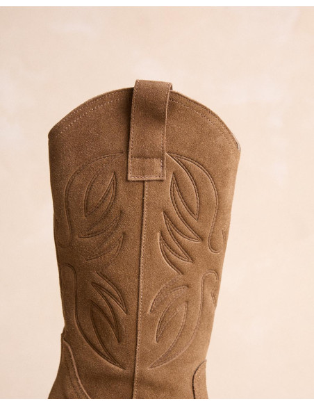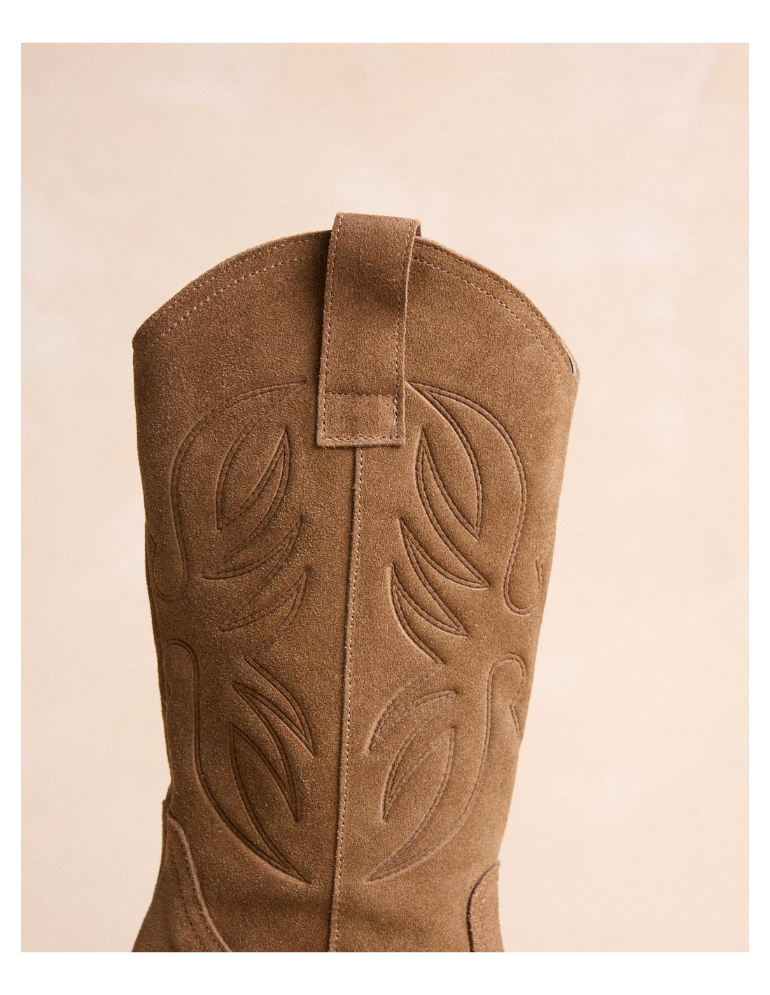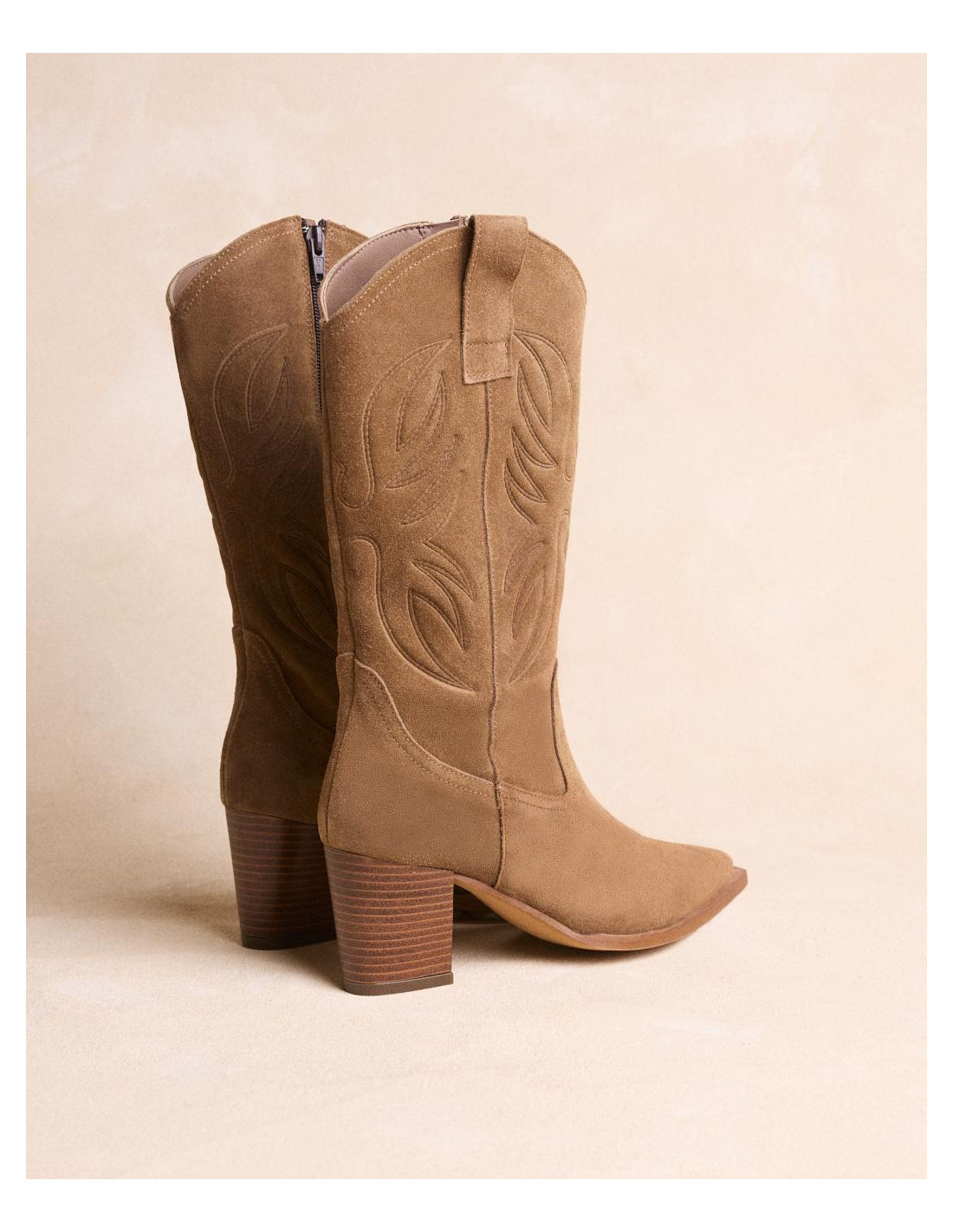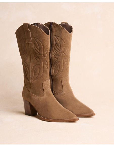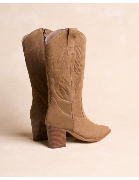 <p><span style="font-size: 10pt; font-family: Arial;">Botas estilo cowboy en color taupe con diseño de caña media y bordados decorativos en la parte superior. Presentan punta afilada y tacón medio ancho que aporta comodidad y estabilidad.</span></p> <p><span style="font-size: 10pt; font-family: Arial;">Unas botas versátiles y cómodas, perfectas para completar tus looks.</span></p> <p><span style="font-size: 10pt; font-family: Arial;">Diseñadas y fabricadas en España.</span></p>