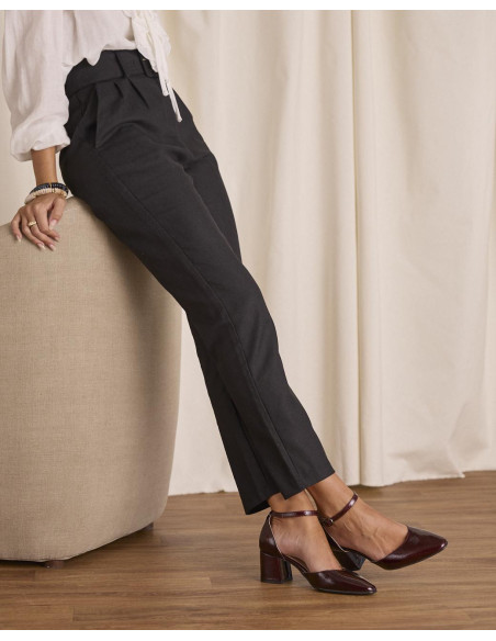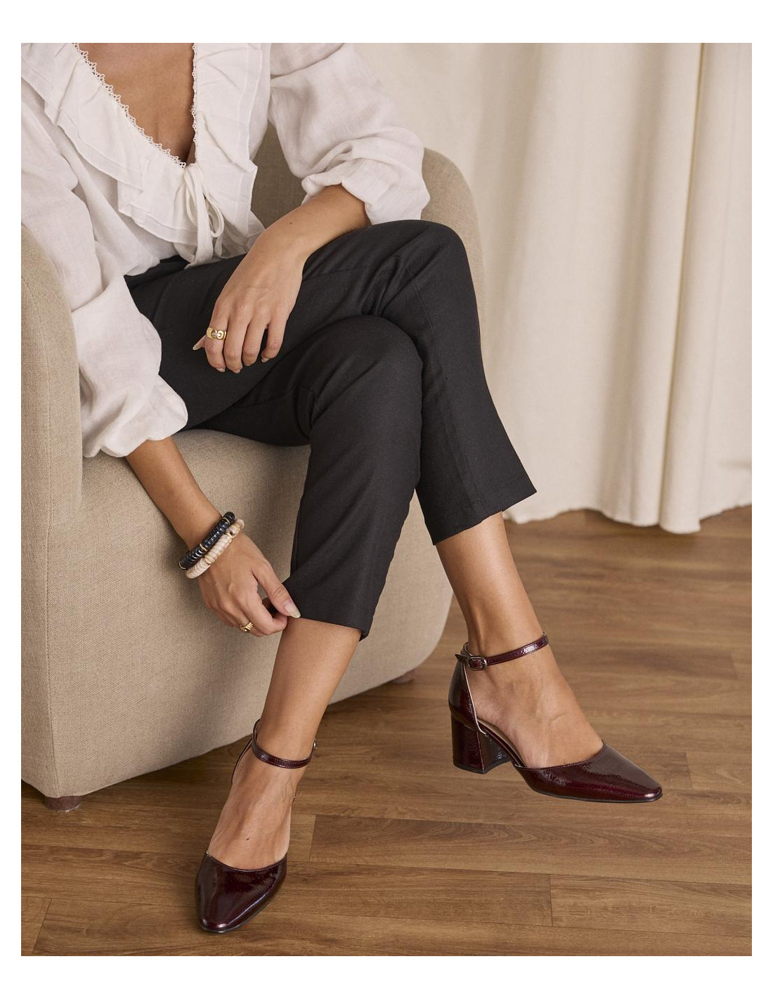 <p><span style="font-size: 10pt; font-family: Arial;">Mary Jane de piel en color burdeos con pulsera al tobillo y acabado en punta.</span></p>