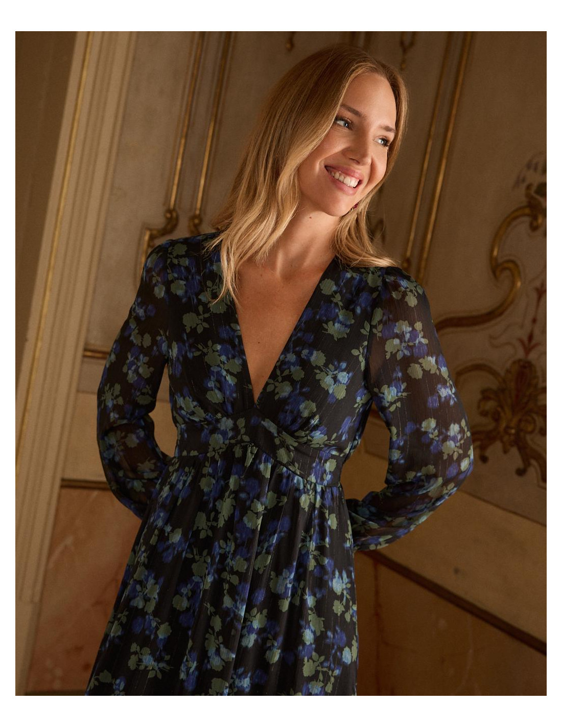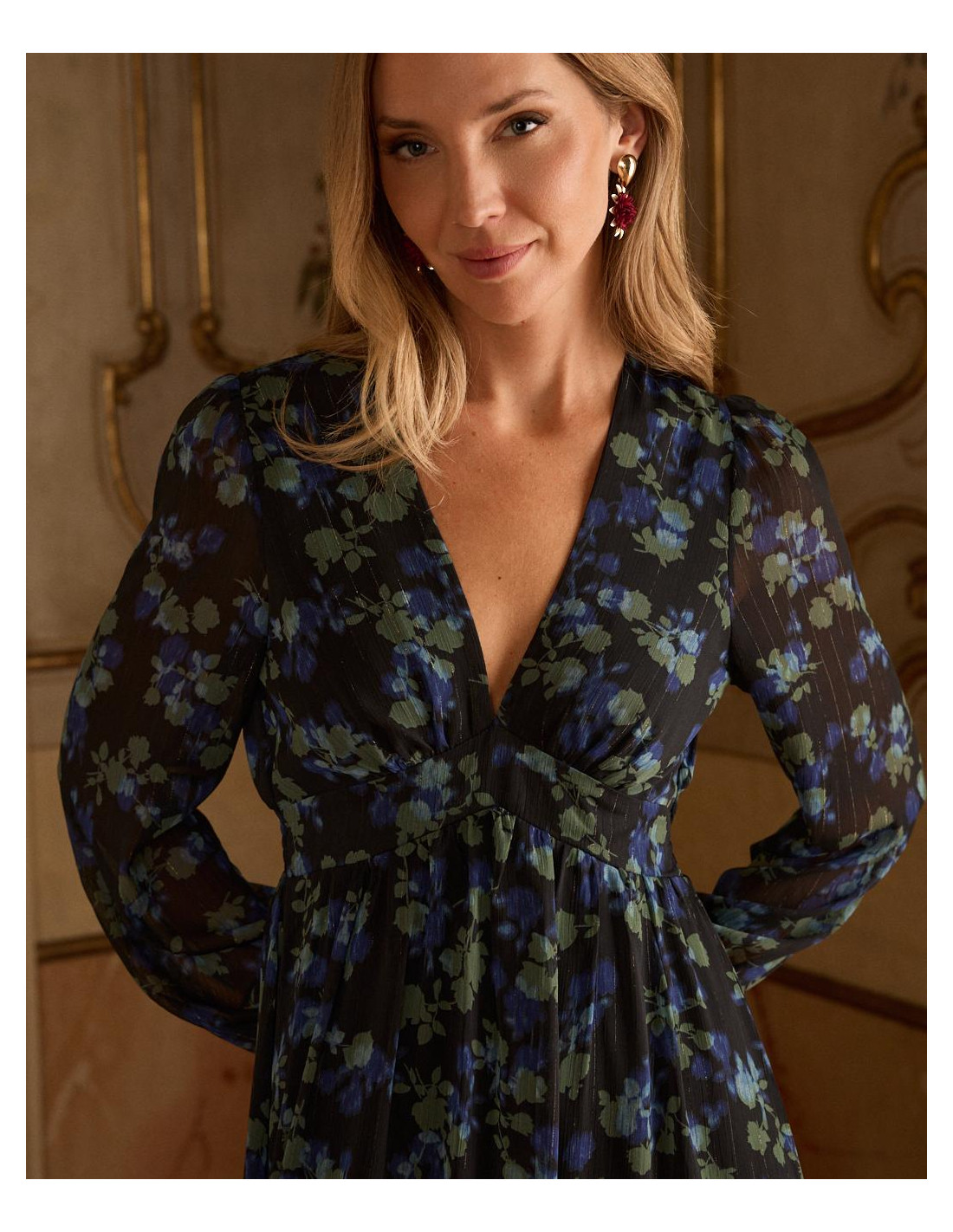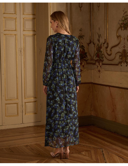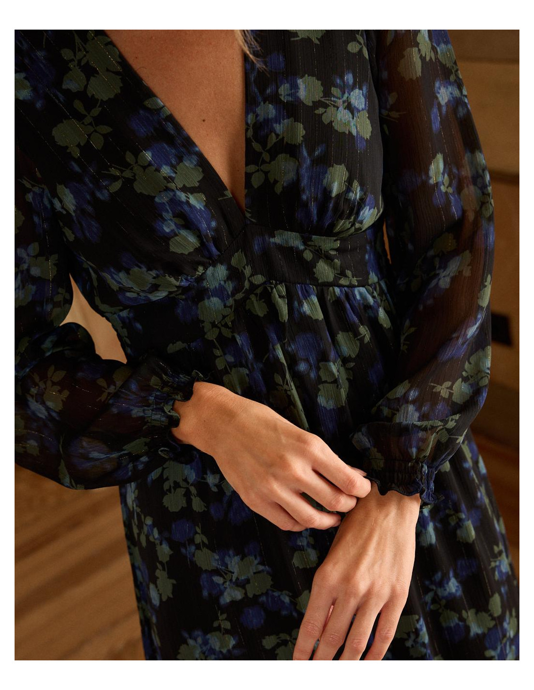 <p><span style="font-size: 10pt; font-family: Arial;">Vestido corto con estampado de lunares en color marrón. Escote en pico cruzado con corte bajo el pecho. Modelo de manga larga terminada en puño. Falda corta con detalle de doble volante en el bajo. Cierre mediante cremallera lateral. Dispone de forro interior. <br /><br /></span></p>
