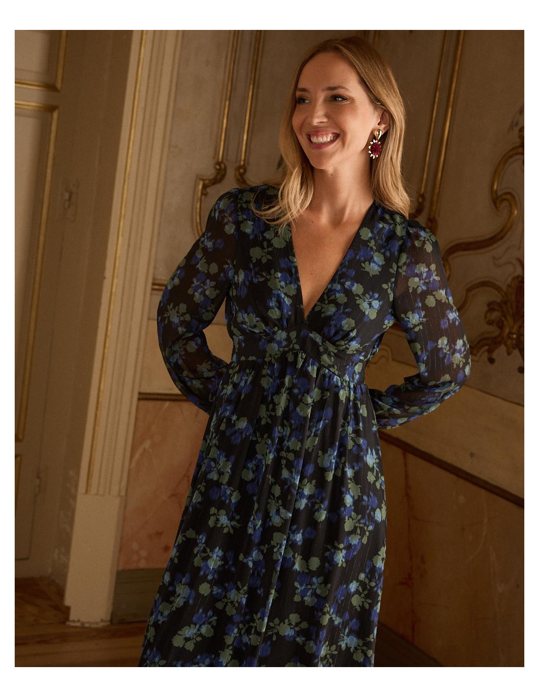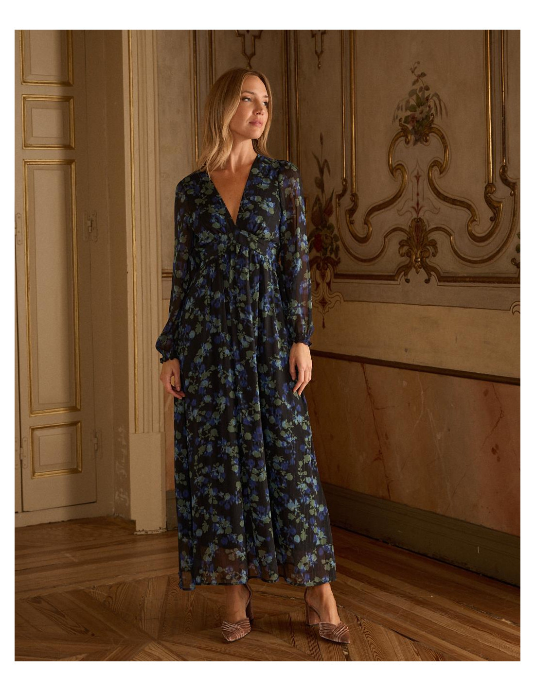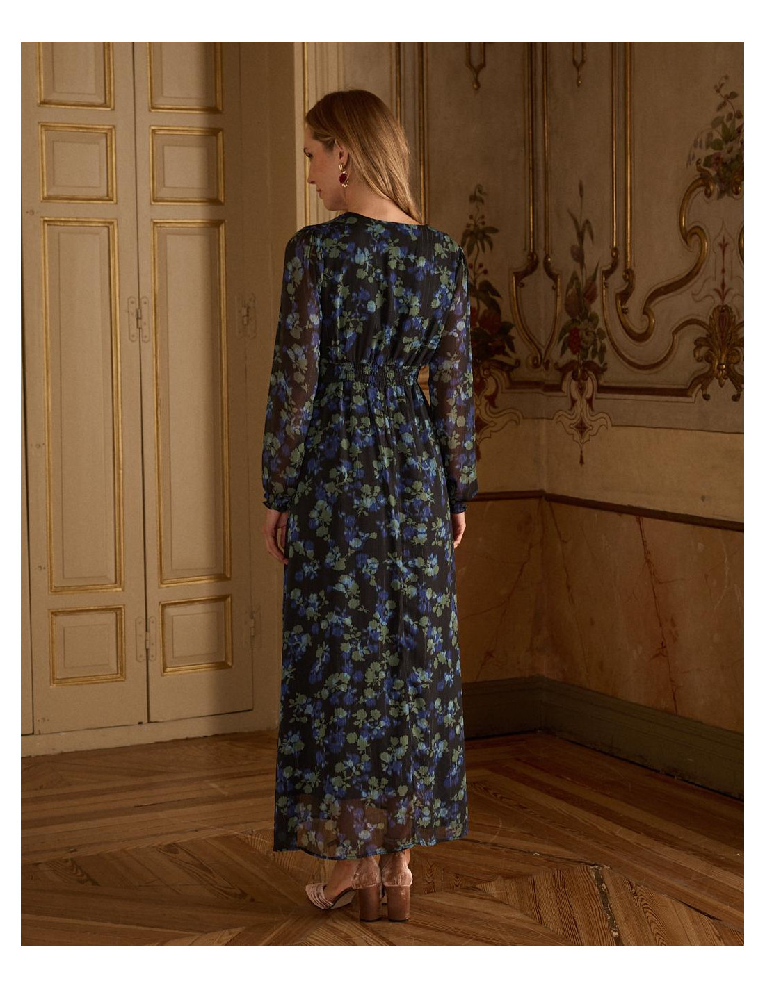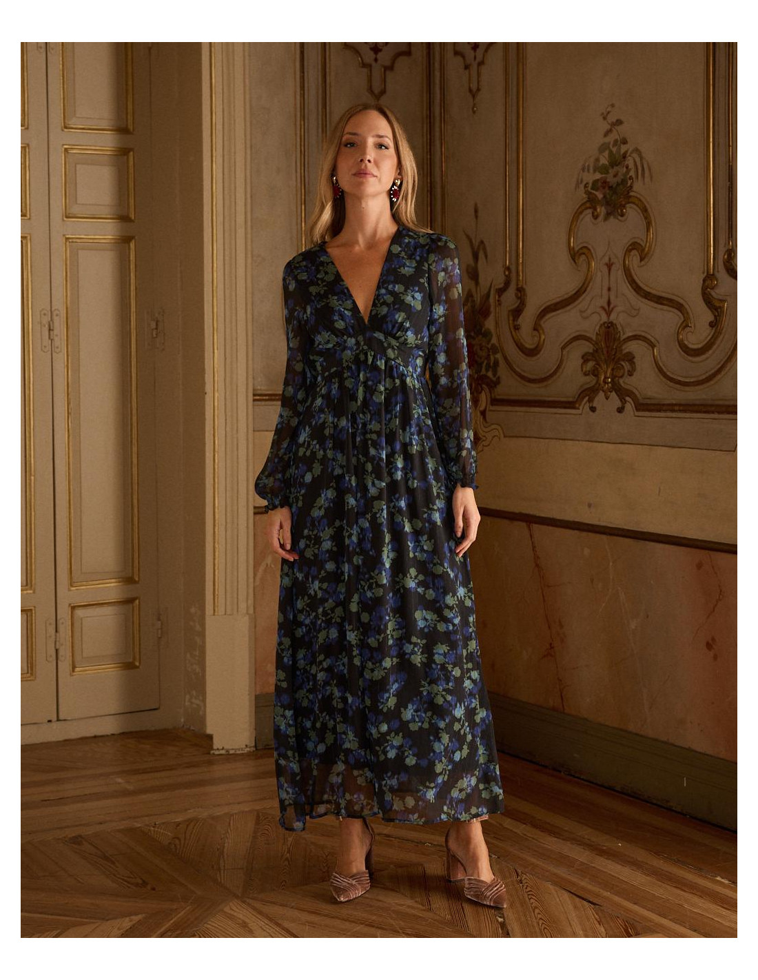 <p><span style="font-size: 10pt; font-family: Arial;">Vestido corto con estampado de lunares en color marrón. Escote en pico cruzado con corte bajo el pecho. Modelo de manga larga terminada en puño. Falda corta con detalle de doble volante en el bajo. Cierre mediante cremallera lateral. Dispone de forro interior. <br /><br /></span></p>