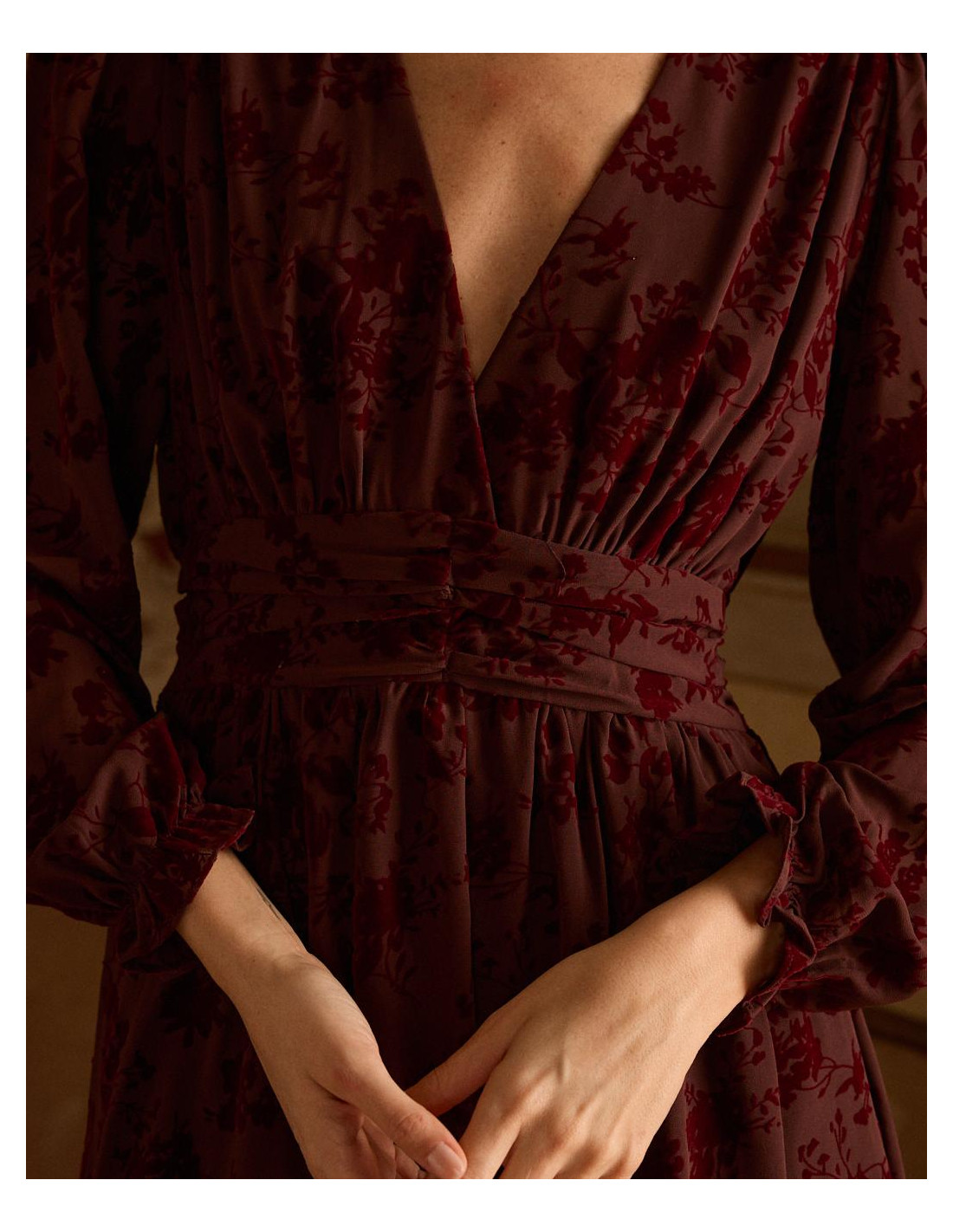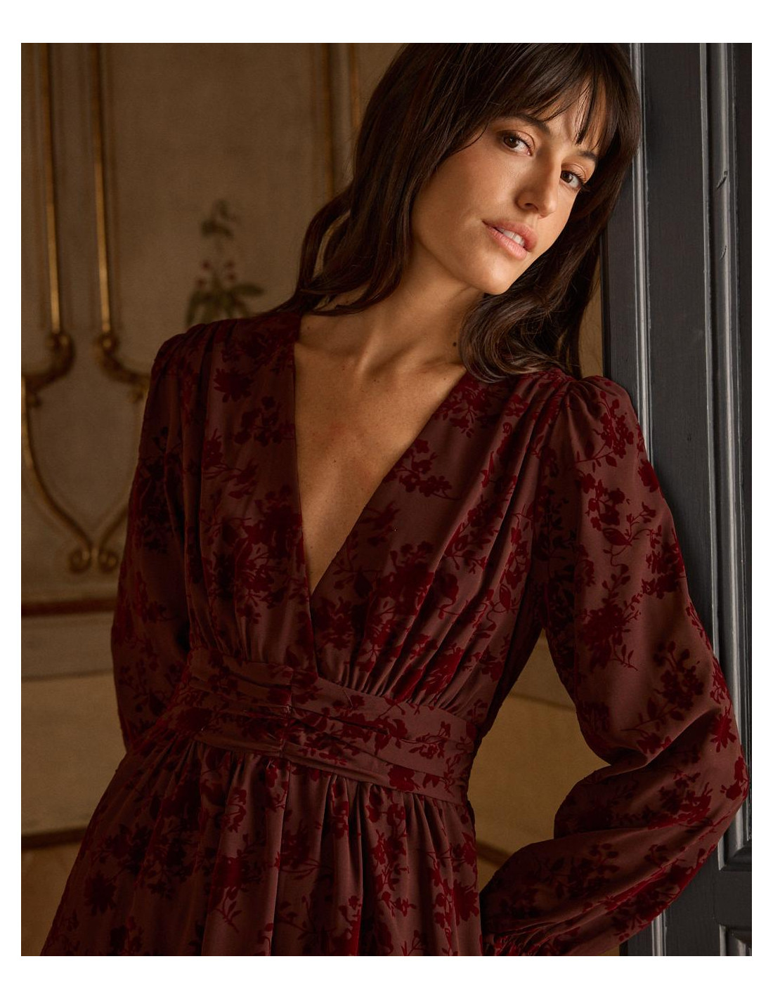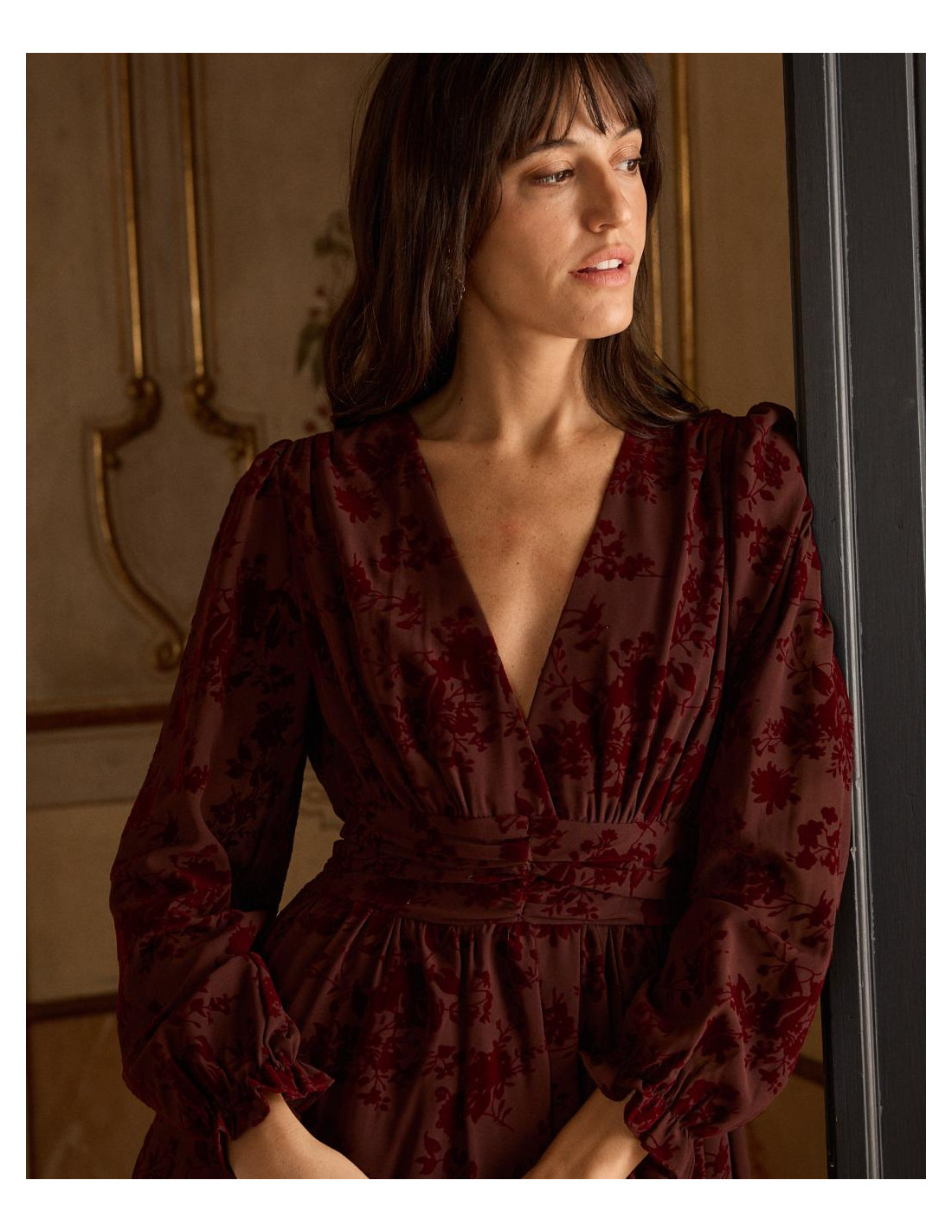 <p><span style="font-size: 10pt; font-family: Arial;">Vestido corto con estampado de lunares en color marrón. Escote en pico cruzado con corte bajo el pecho. Modelo de manga larga terminada en puño. Falda corta con detalle de doble volante en el bajo. Cierre mediante cremallera lateral. Dispone de forro interior. <br /><br /></span></p>