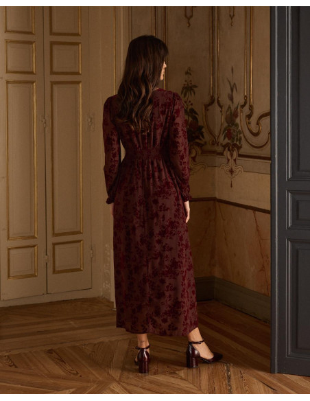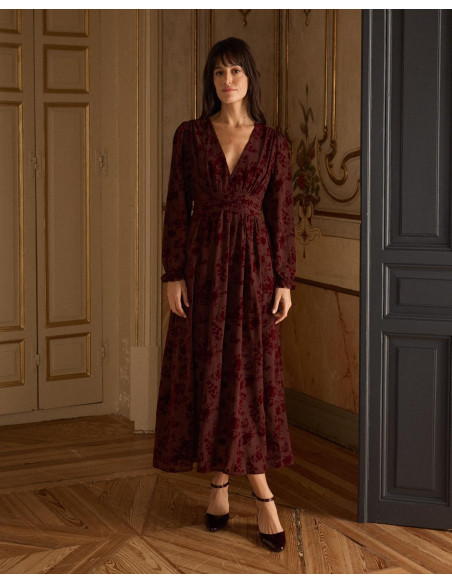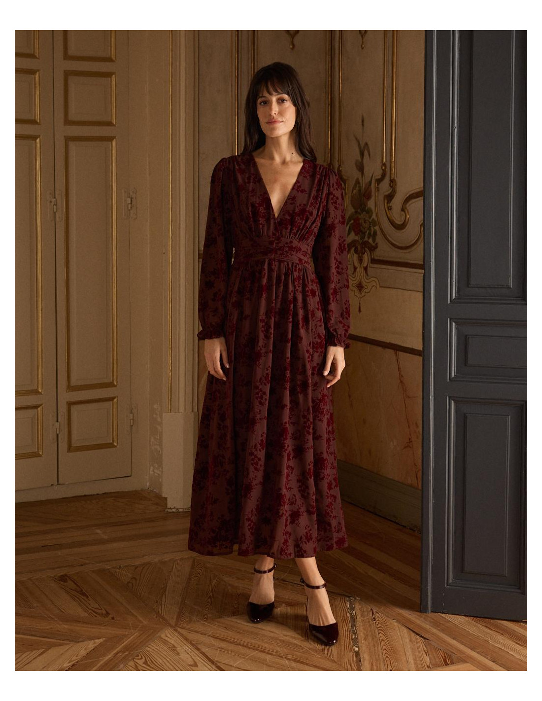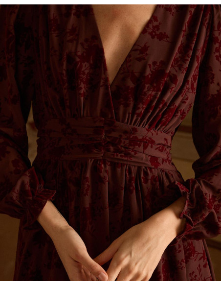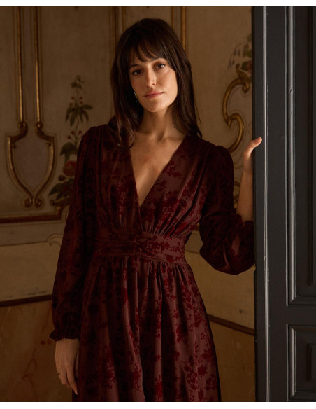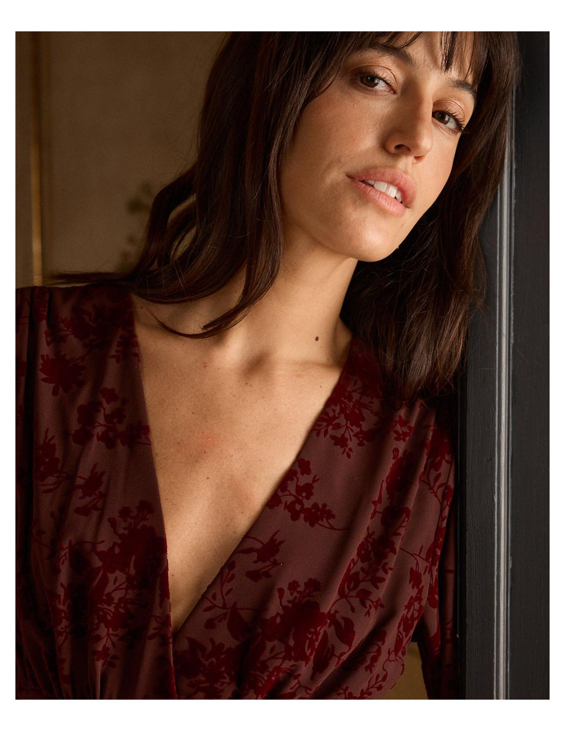 <p><span style="font-size: 10pt; font-family: Arial;">Vestido corto con estampado de lunares en color marrón. Escote en pico cruzado con corte bajo el pecho. Modelo de manga larga terminada en puño. Falda corta con detalle de doble volante en el bajo. Cierre mediante cremallera lateral. Dispone de forro interior. <br /><br /></span></p>