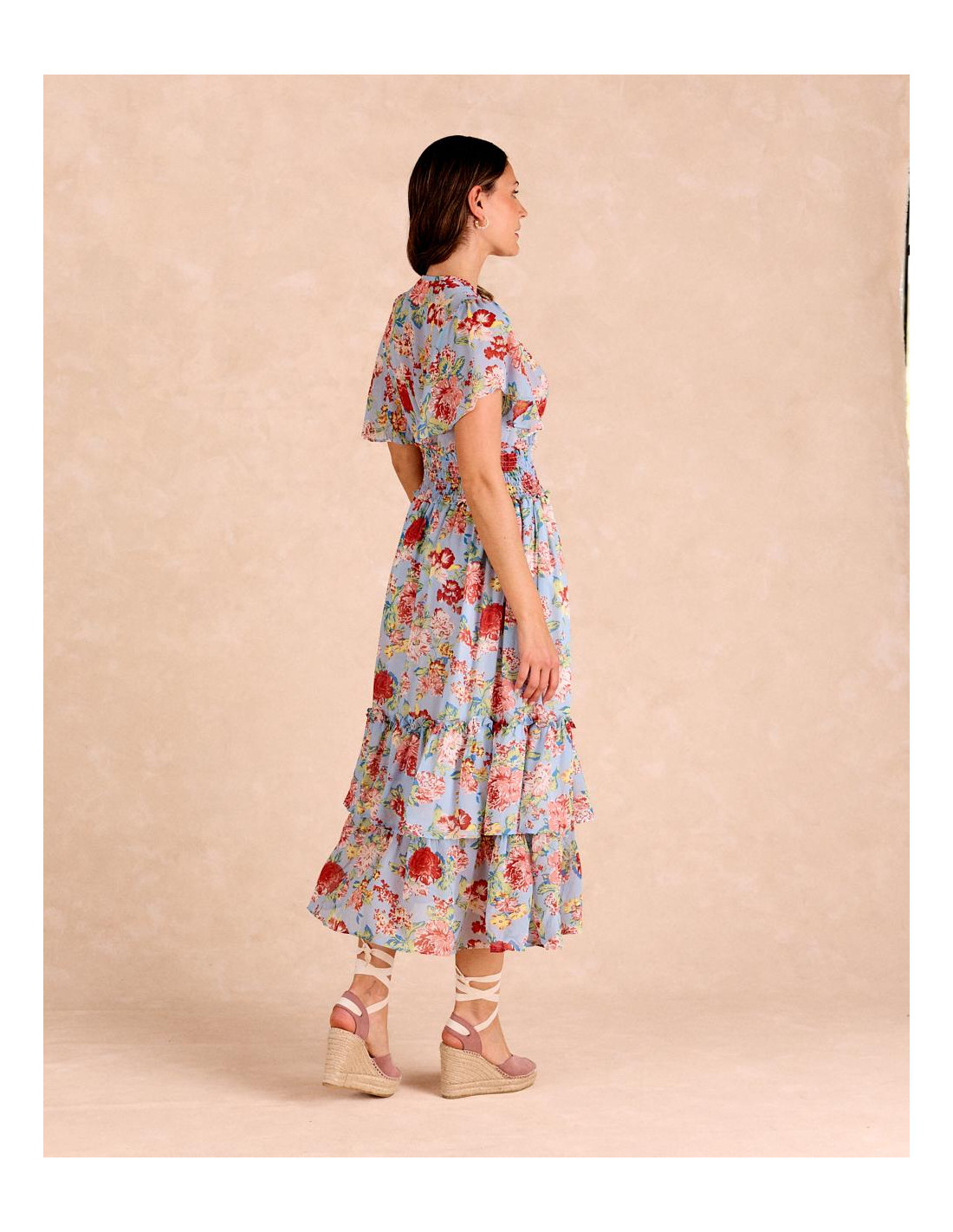 Vestido Flores Volantes Celeste